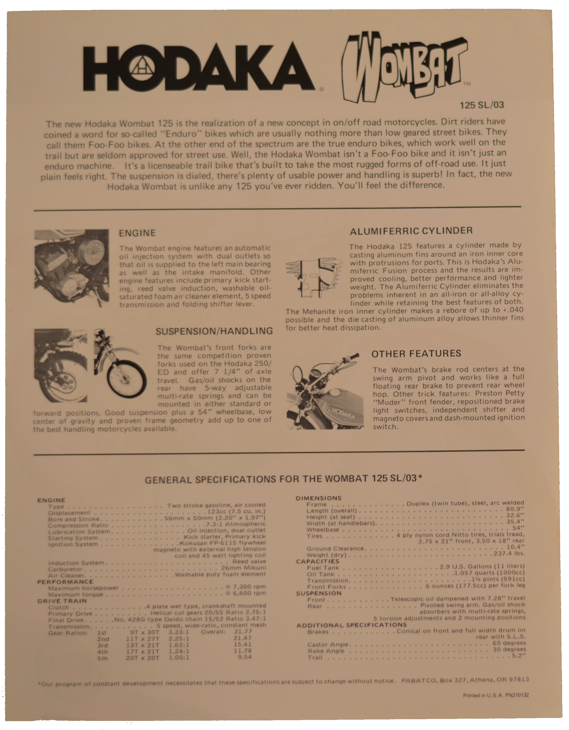 Hodaka 8 1/2″ x 11″ sales flier for the Model 03