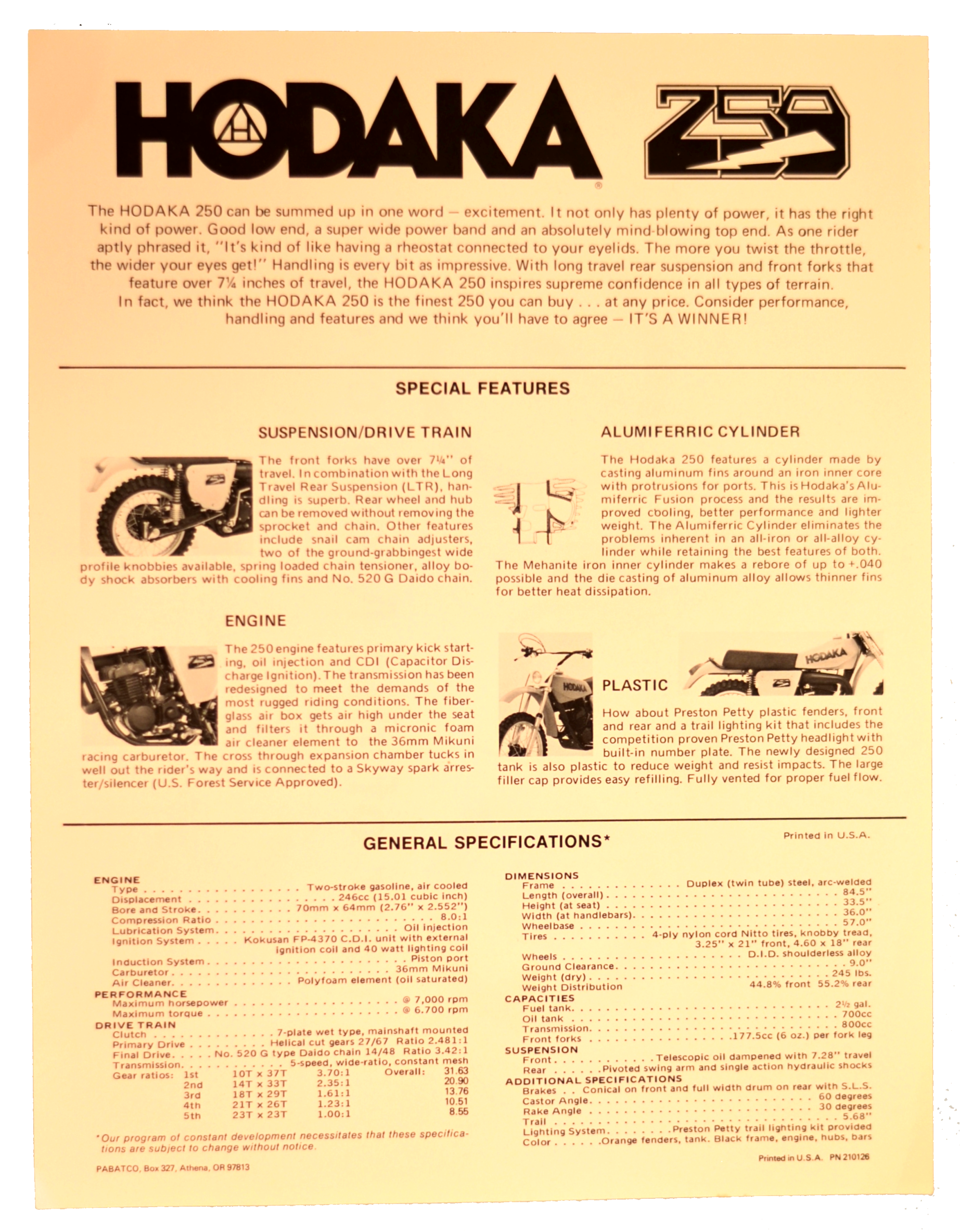 Hodaka 8 1/2" x 11" sales flier for the Model 71 quantity
