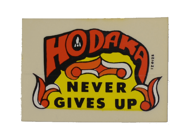 Hodaka Never Gives Up Decal – 2 3/8″ x 1 3/4″